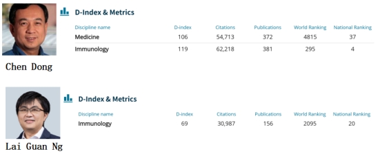 双杰上榜!2025免疫学领域最佳科学家排名公布,我院董晨院士位列中国第4名、Lai Guan Ng教授位列中国第20名