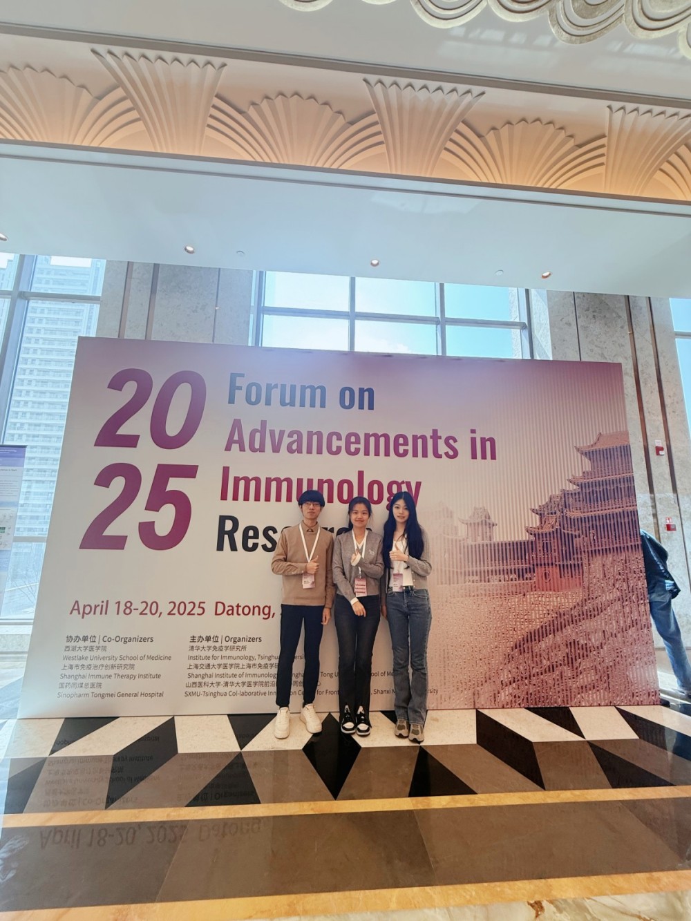 第九届“2025 免疫学进展论坛”于2025年4月18-21日在山西大同大同云冈大酒店召开。该会议由清华大学免疫学研究所主办,上海市免疫学研究所、西湖大学、上海市免疫治疗创新研究院、山西医科大学、国药同煤总医院协办,特邀美国国家科学院外籍院上,香港科学院院士,多伦多大学医学生物物理学教授麦德华(Tak Mak)教授以及美国科学院院士,美国医学院院士,美国国立卫生研究院(NIH)国家过敏与传染病研究所(NIAID)免疫系统生物学实验室(Laboratory of Immune System Biology)主任,淋巴细胞生物学研究部(1ymphocyte Biology Section)主任Ronald N. Germain教授担任主旨报告嘉宾。 在研究生报告以及墙报展示交流环节中,Lai Guan Ng课题组同学与老师充分互动,围绕免疫学及相关领域的前沿问题以及最新进展展开了交流与讨论。