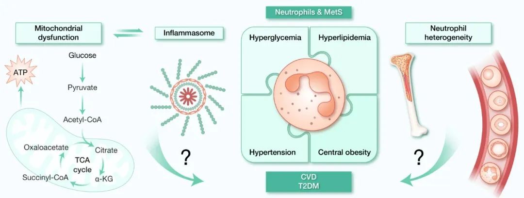 未来研究有望突破传统单维度分析框架,借助多组学整合技术构建中性粒细胞功能图谱,揭示其在线粒体-炎症小体轴调控下的异质性特征。这不仅有助于解析代谢综合征的异质性疾病谱,更可能筛选出具有诊断价值的生物标志物,为T2DM、CVD等代谢性疾病的精准预防与个体化治疗提供新靶点。例如,针对中性粒细胞代谢重编程关键节点的干预策略,或可重塑代谢-免疫交互网络,从根源上阻断代谢综合征的病理级联反应。
